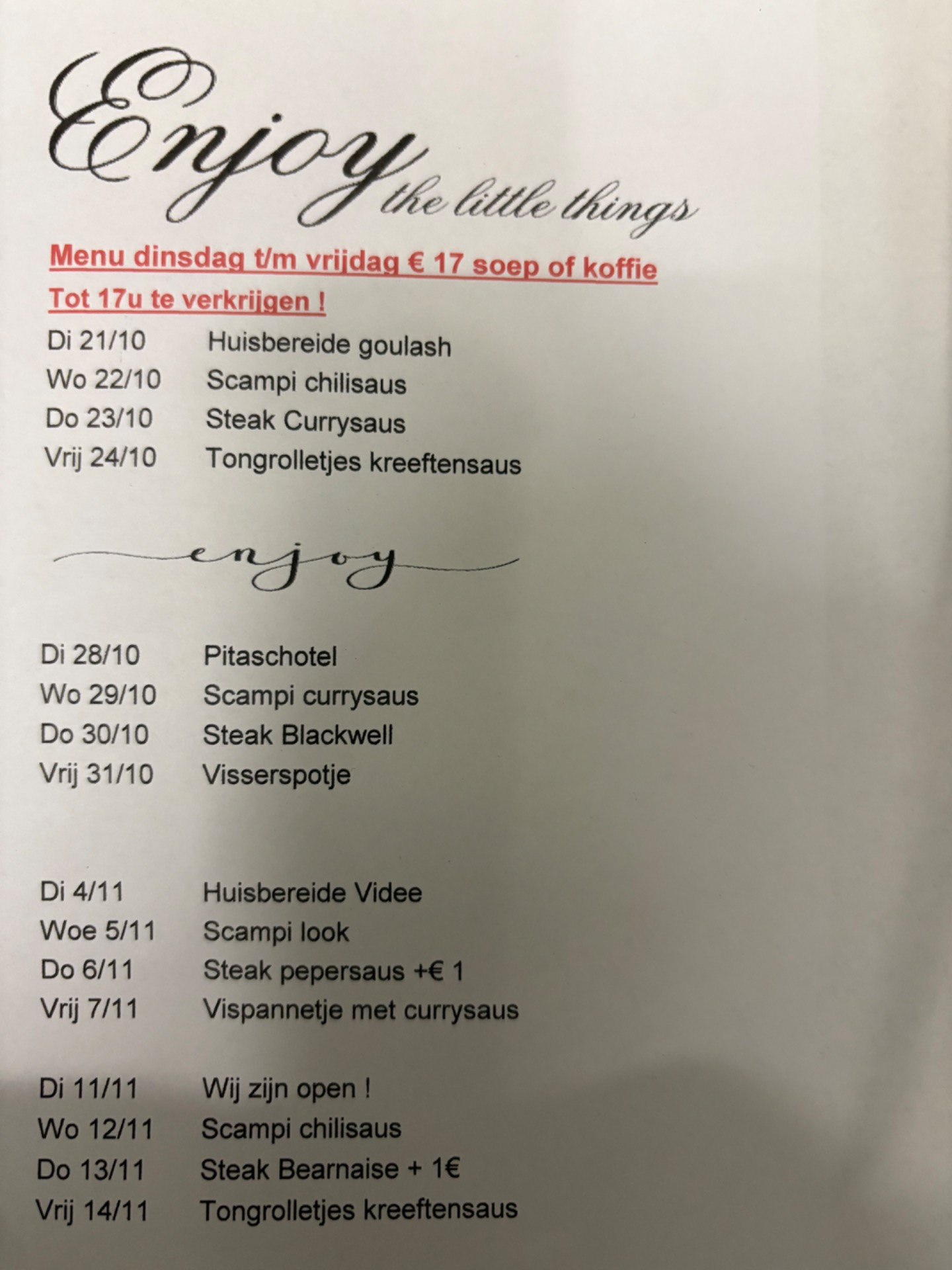 elke dag hebben wij lunchmenu vanaf 11u tot 17u